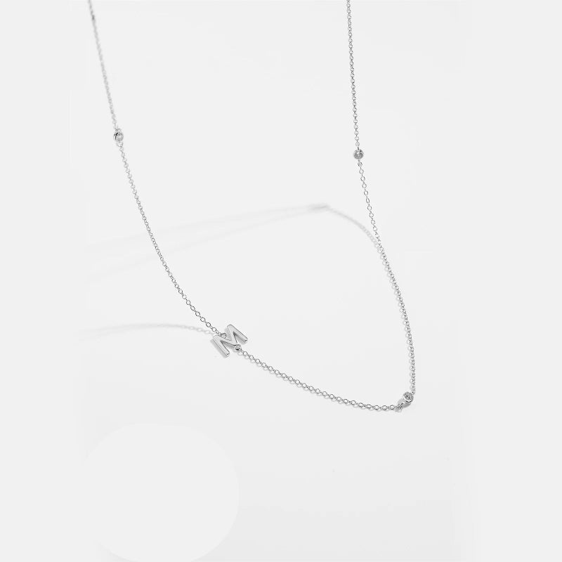 Add a touch of sophistication to your style with our 925 Sterling Silver Gold Letter Plain Pendant Choker Charm Initial M Necklace. Made with shining Zircon, this necklace adds a subtle sparkle to your look. It's simple yet elegant design allows for versatility, perfect for any occasion. Show off your individuality with a personalized letter pendant.