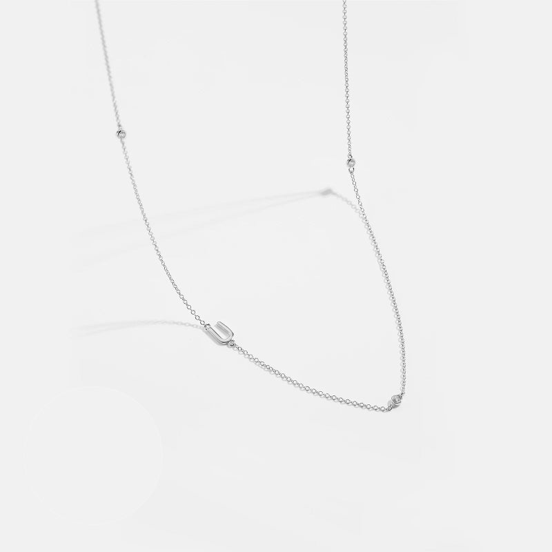 Add a touch of sophistication to your style with our 925 Sterling Silver Gold Letter Plain Pendant Choker Charm Initial U Necklace. Made with shining Zircon, this necklace adds a subtle sparkle to your look. It's simple yet elegant design allows for versatility, perfect for any occasion. Show off your individuality with a personalized letter pendant.