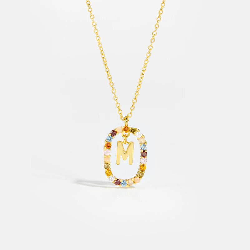 Add a touch of elegance and charm to your wardrobe with this beautiful initial M pendant necklace. The brilliant zircon gems add a pop of color, while the vintage-inspired design exudes femininity. Plus, you can wear it with confidence knowing that it contains no harmful chemicals. The adjustable link chain ensures a perfect fit, making it the ideal accessory to pair with any dress.